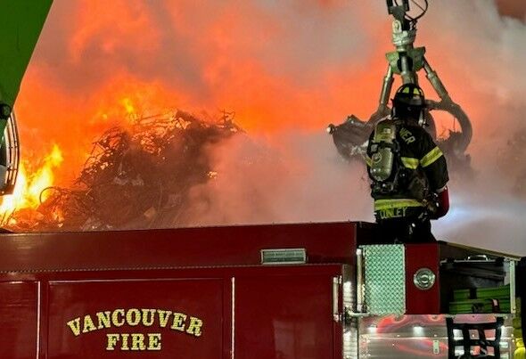 More than 40 firefighters from the Vancouver Fire Department, including several crews from Clark County Fire District 6, worked through the night to put the fire out at Pacific Coast Shredding.