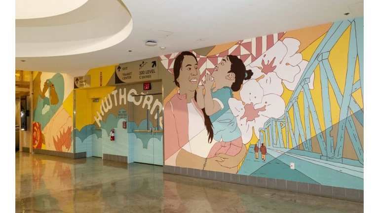 On the Rose Quarter Commons between Moda Center’s North and South Entrances, a beautiful wall has taken shape with six distinct murals representing the idea of ‘Roots to Roses’. Roots to Roses came to life to celebrate the rich diversity and resilience of Portland’s communities, highlighting their historical roots and cultural blossoms like vibrant roses.