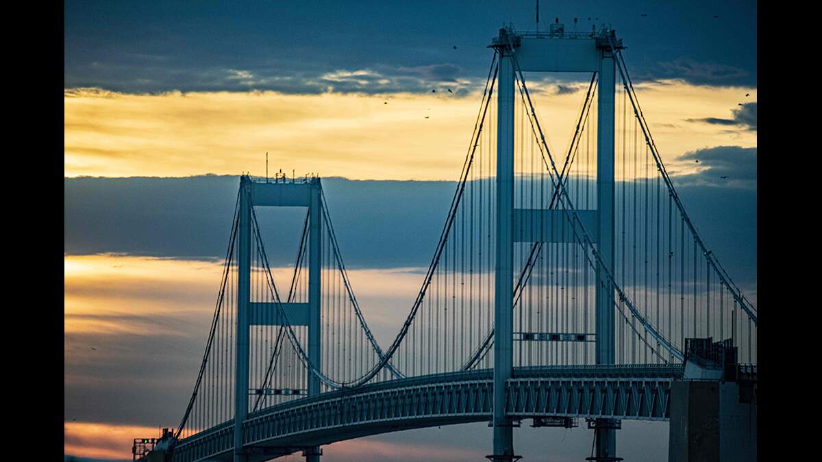 It's the Gov. William Preston Lane Jr. Memorial Bridge in Maryland, commonly known as the Chesapeake Bay Bridge. Originally opened in 1952, its 4.3 miles connect Sandy Point on the west to Stevensville on the east. At the time it opened, it was the third-longest bridge on Earth and the world's longest continuous steel structure over water. In 1973, it got even bigger when a second bridge was built next to it for westbound traffic. That one is even taller, with a suspension tower rising 379 feet above the water and the road 200 feet high, 14 feet higher than the eastbound road.