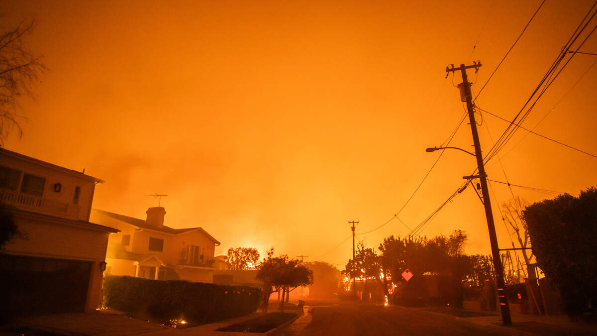 Firefighters in California have been battling winds over 60 miles an hour that are making fires difficult to control.