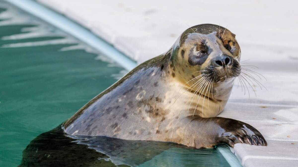 Garry now appears several days each week in the public pinniped habitat. She can be identified by her small size and the dark fur where her eyes once were. Like all Aquarium mammals, she will continue to rotate behind-the-scenes for health checks, training, and habitat maintenance.