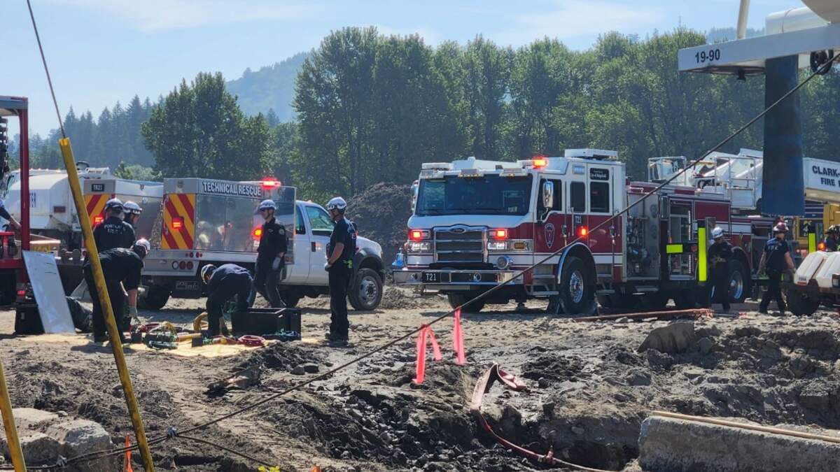 The worker was in a 15-foot-deep trench when a heavy piece of machinery fell on him.